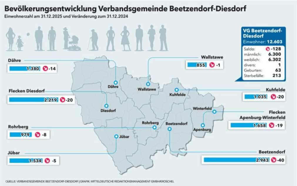 In der Verbandsgemeinde Beetzendorf-Diesdorf sind im Vorjahr nur 63 Babys geboren, die zweit...